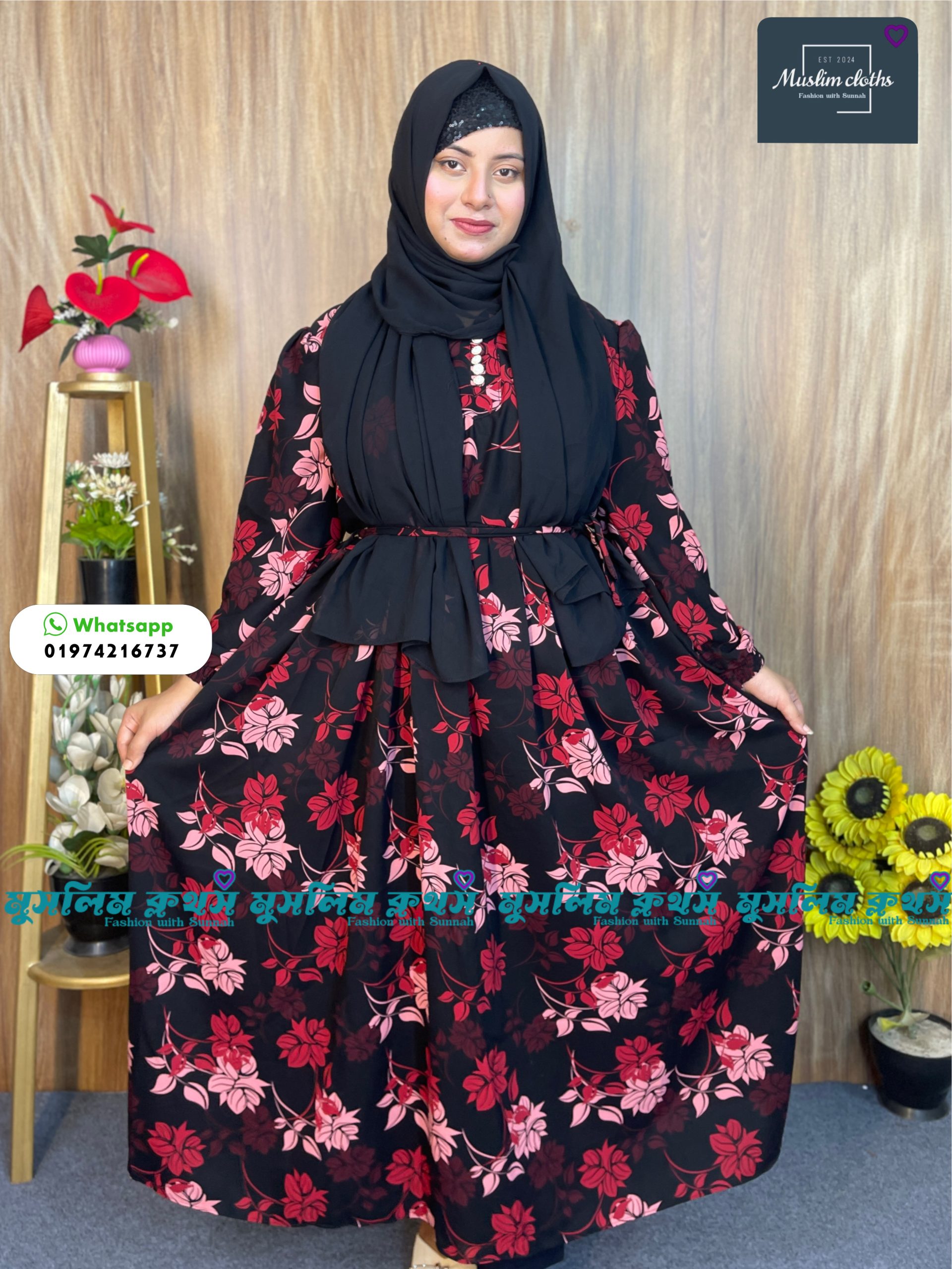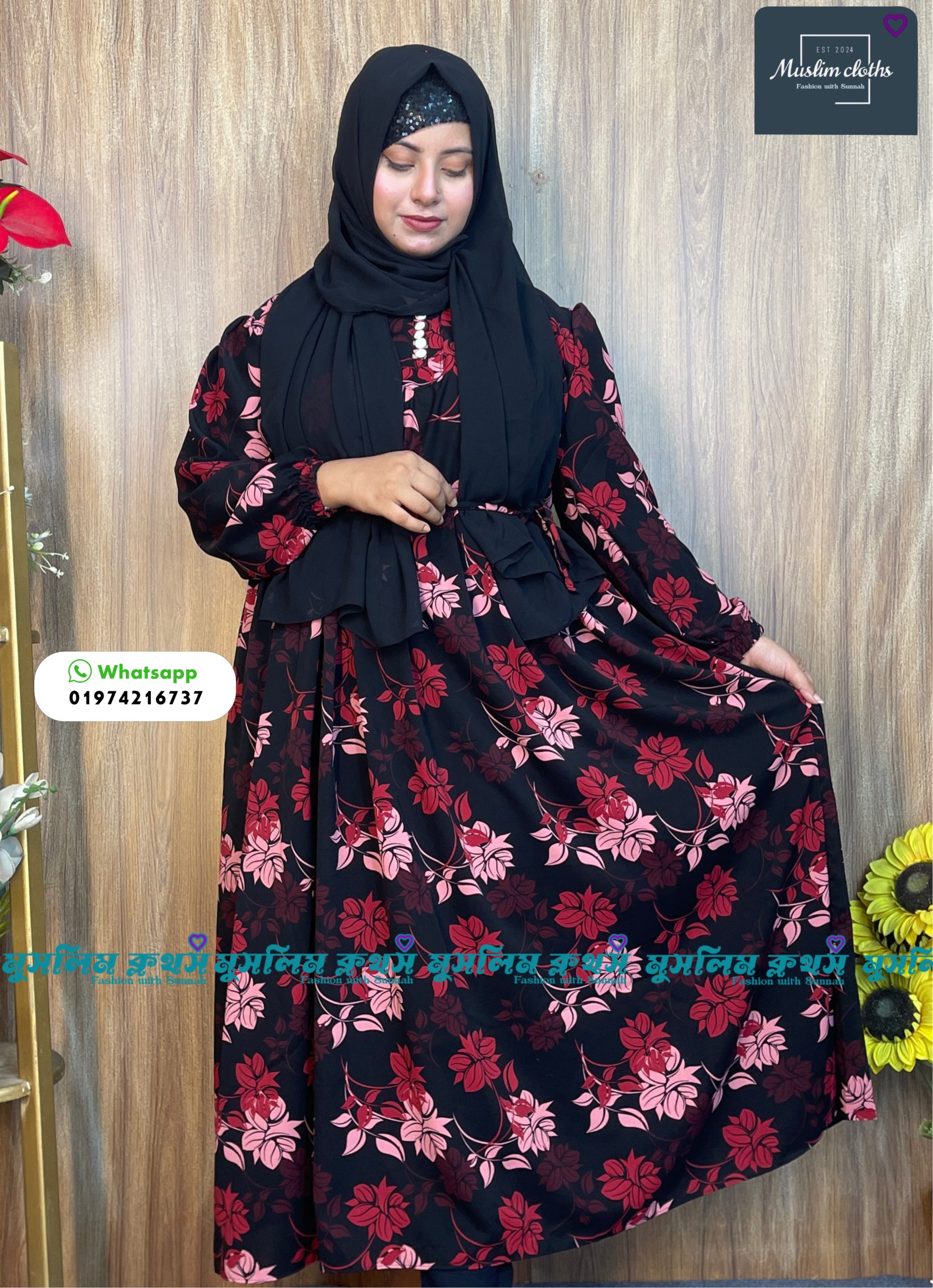 এলেক্স চেরি কাপড়ের প্রিন্টেট গাউন বোরকা 2544