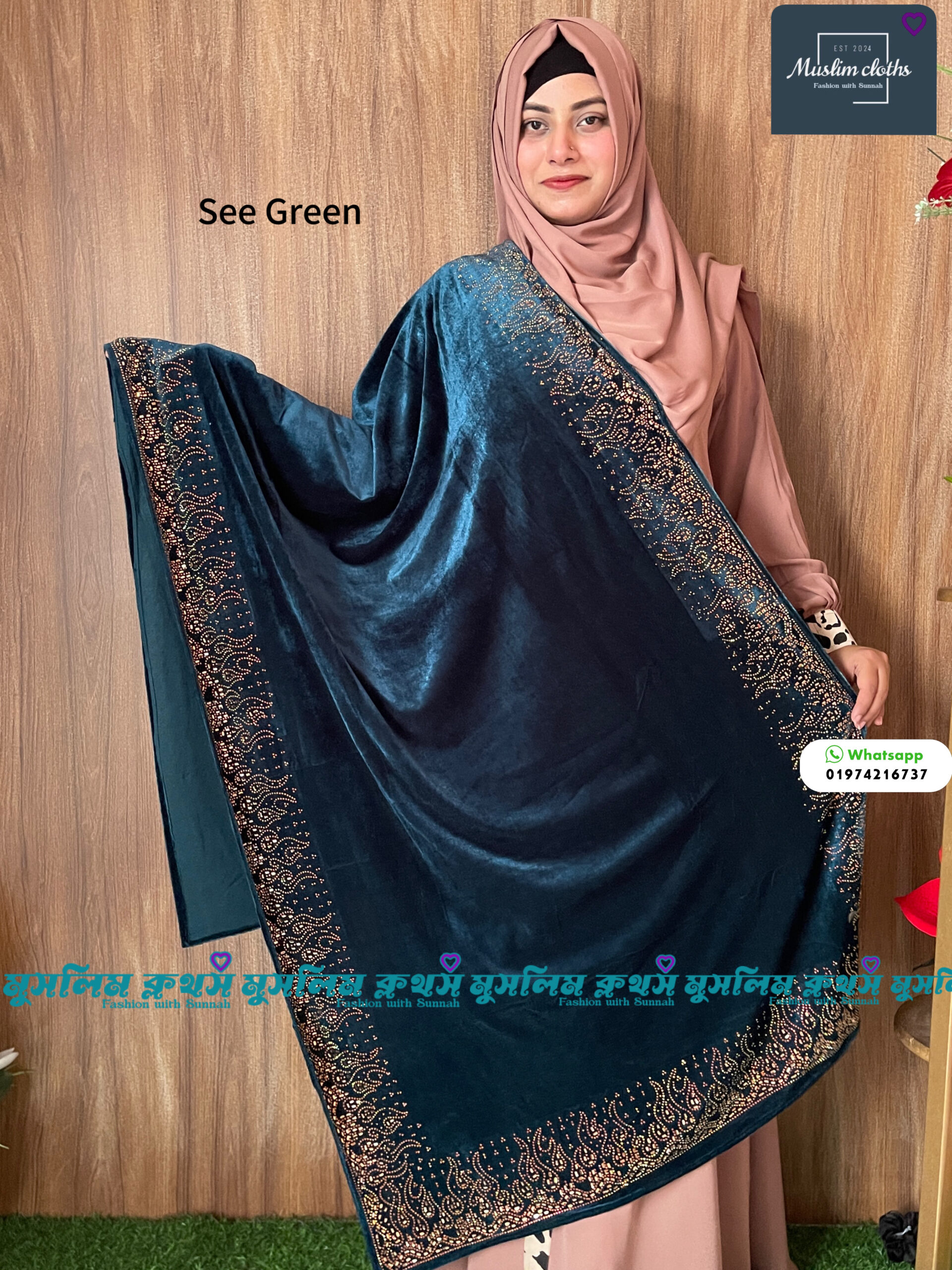 প্রিমিয়াম কোয়ালিটির স্টোন ওয়ার্ক ভেলভেট শাল Agun Sea Green