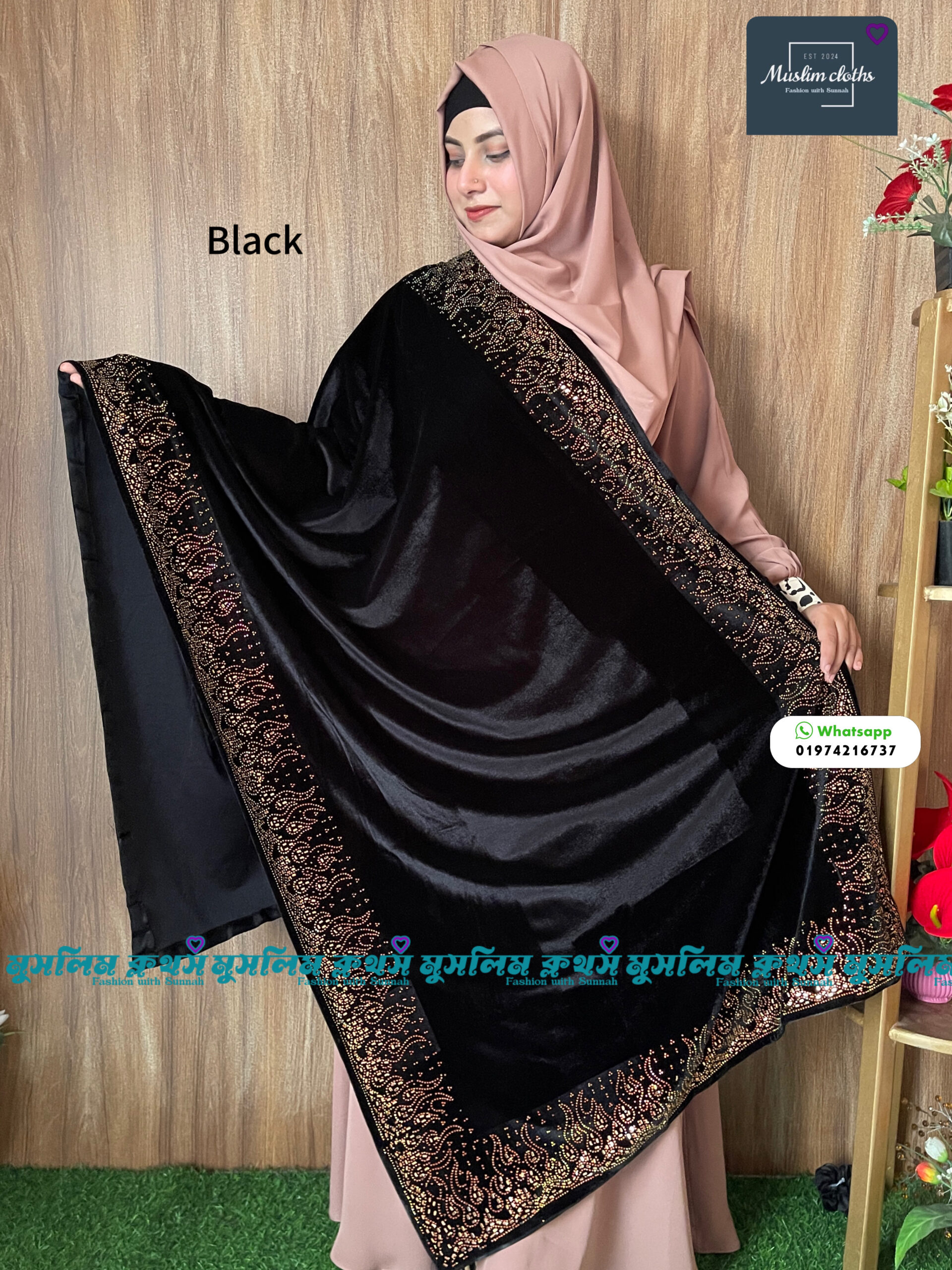 প্রিমিয়াম কোয়ালিটির স্টোন ওয়ার্ক ভেলভেট শাল Agun Black