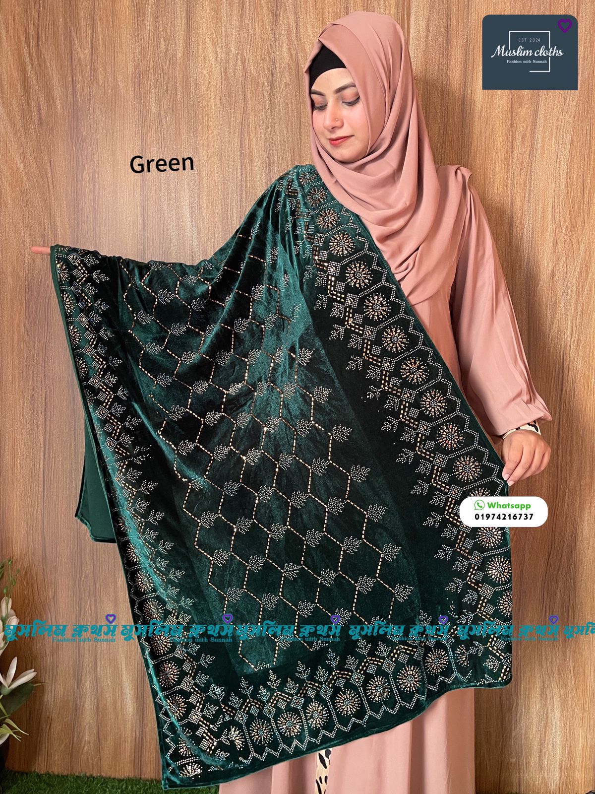 প্রিমিয়াম কোয়ালিটির স্টোন ওয়ার্ক ভেলভেট শাল Pata Green