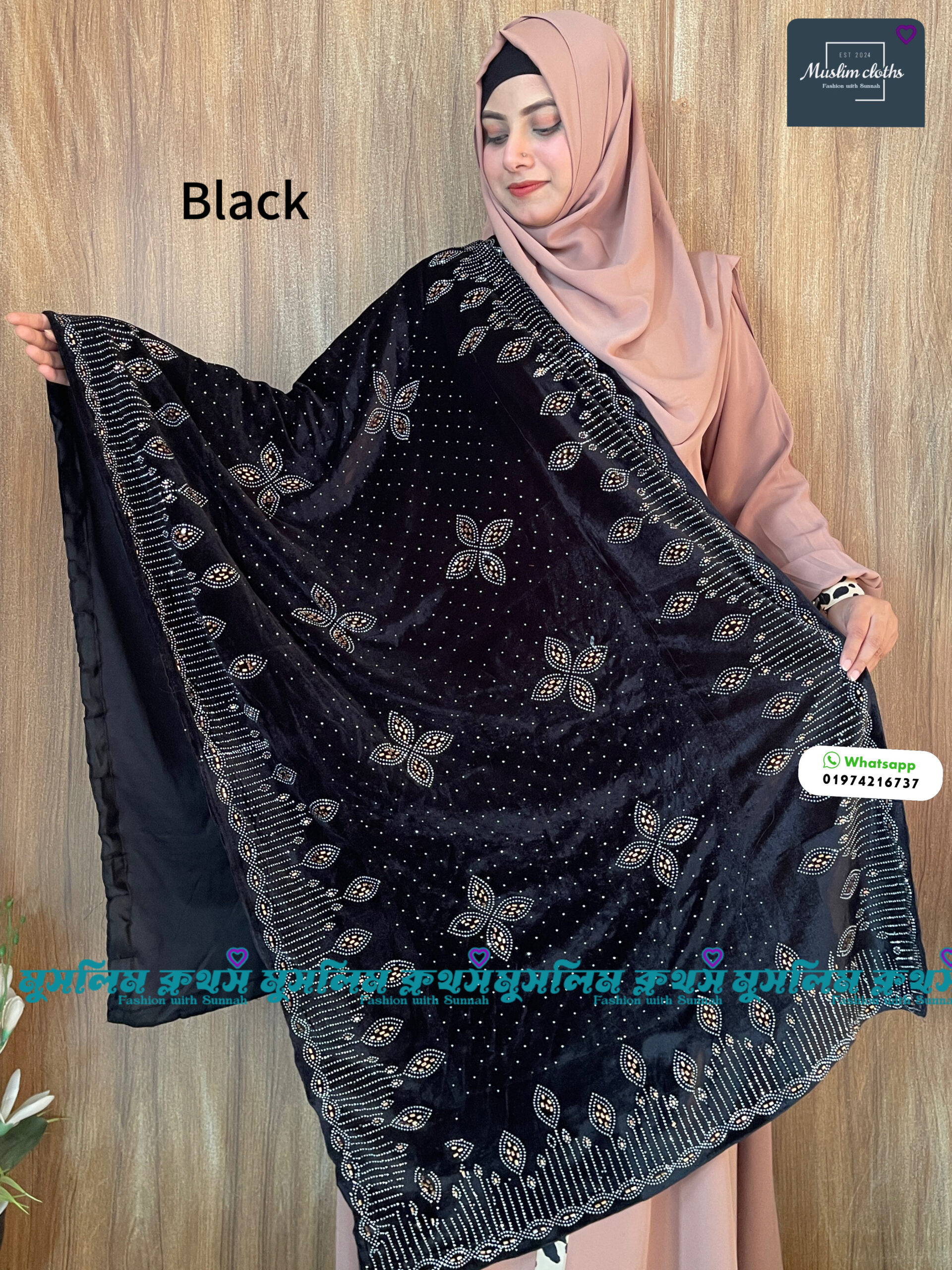 প্রিমিয়াম কোয়ালিটির স্টোন ওয়ার্ক ভেলভেট শাল Ful Black