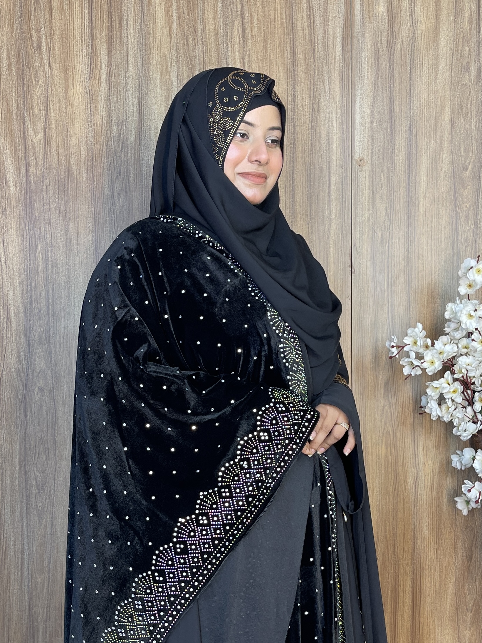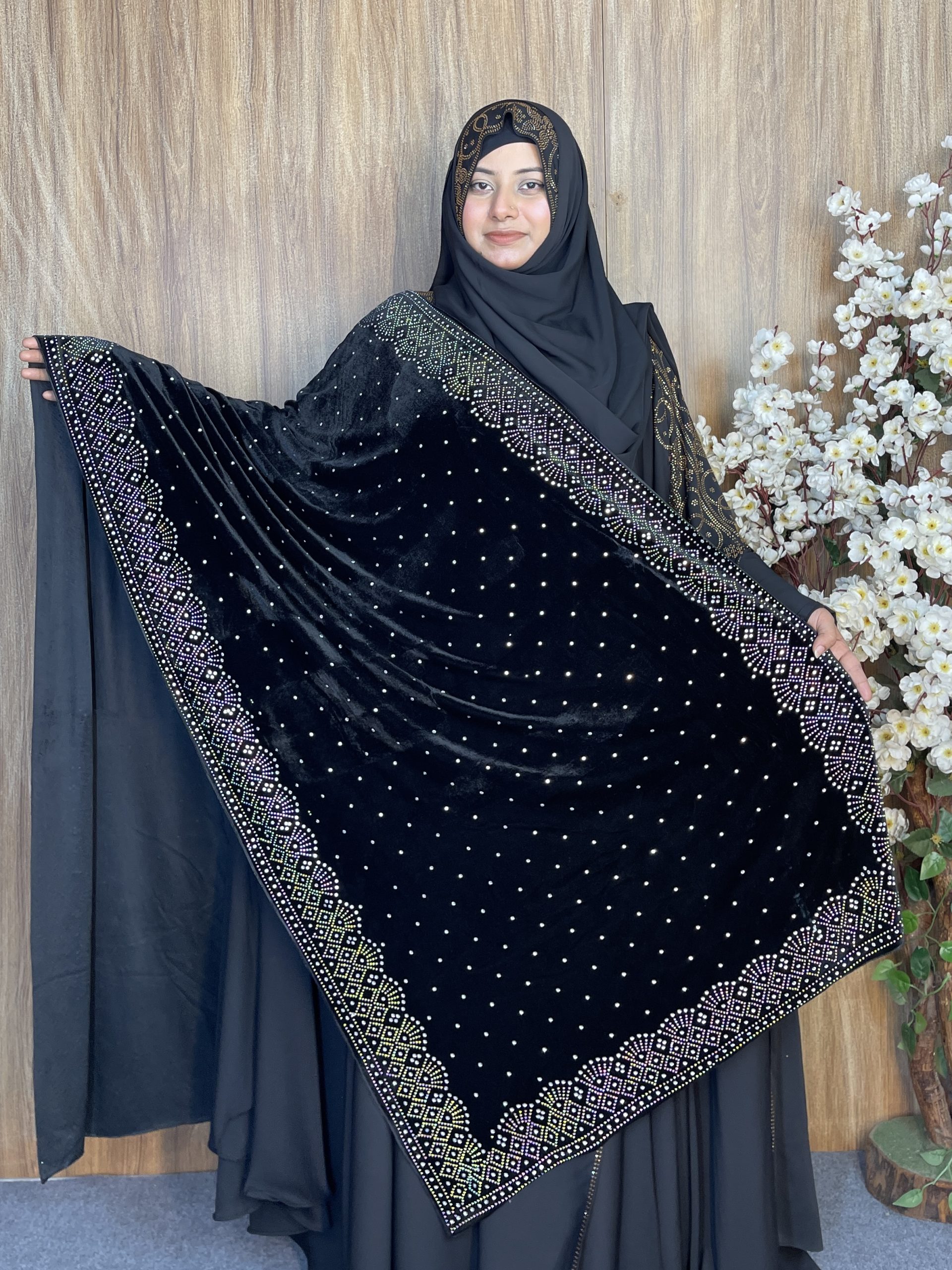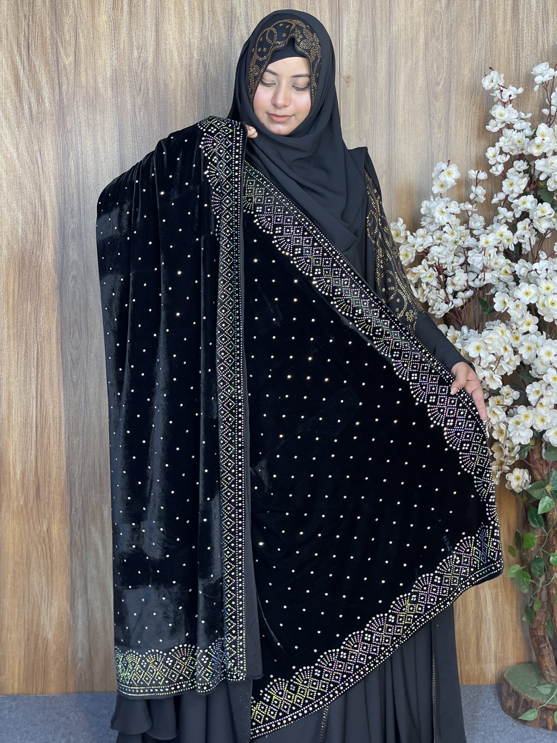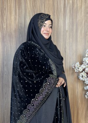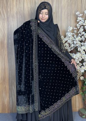 প্রিমিয়াম স্টোন ওয়ার্ক ভেলভেট শাল – Dot Black | ইন্ডিয়ান সুপার কোয়ালিটি ভেলভেট শাল