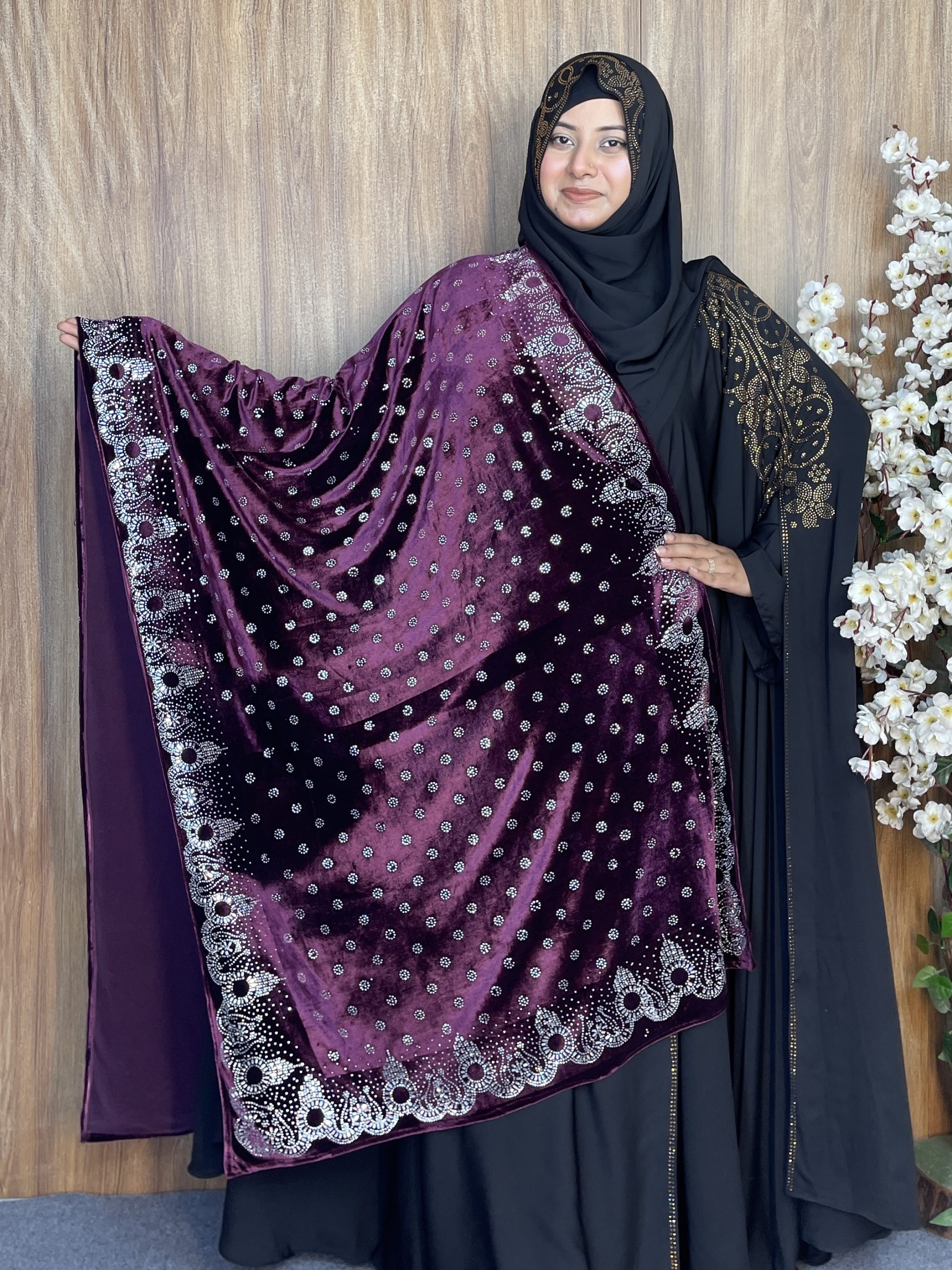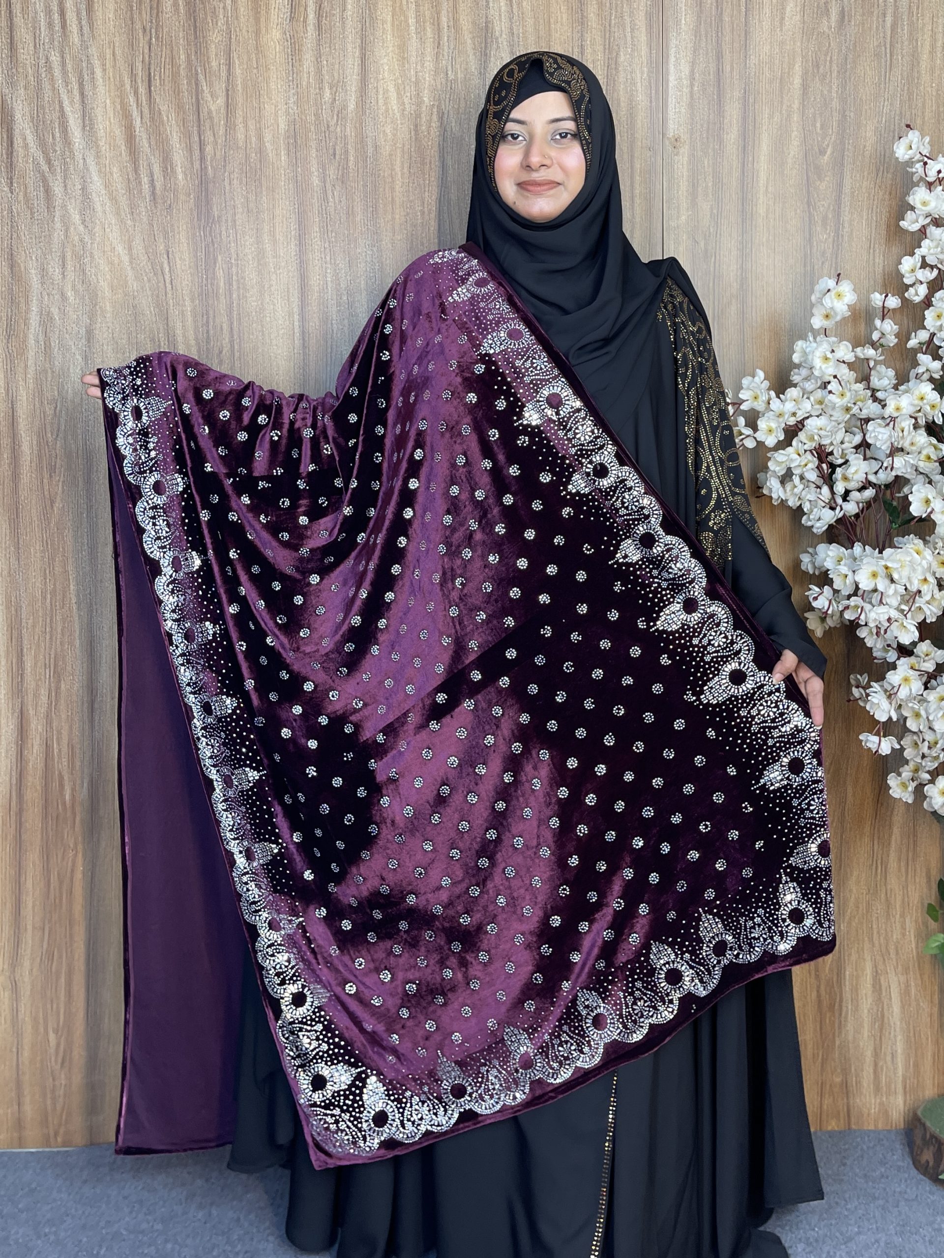 প্রিমিয়াম স্টোন ওয়ার্ক ভেলভেট শাল – Zhinuk Purple | ইন্ডিয়ান সুপার কোয়ালিটি ভেলভেট শাল