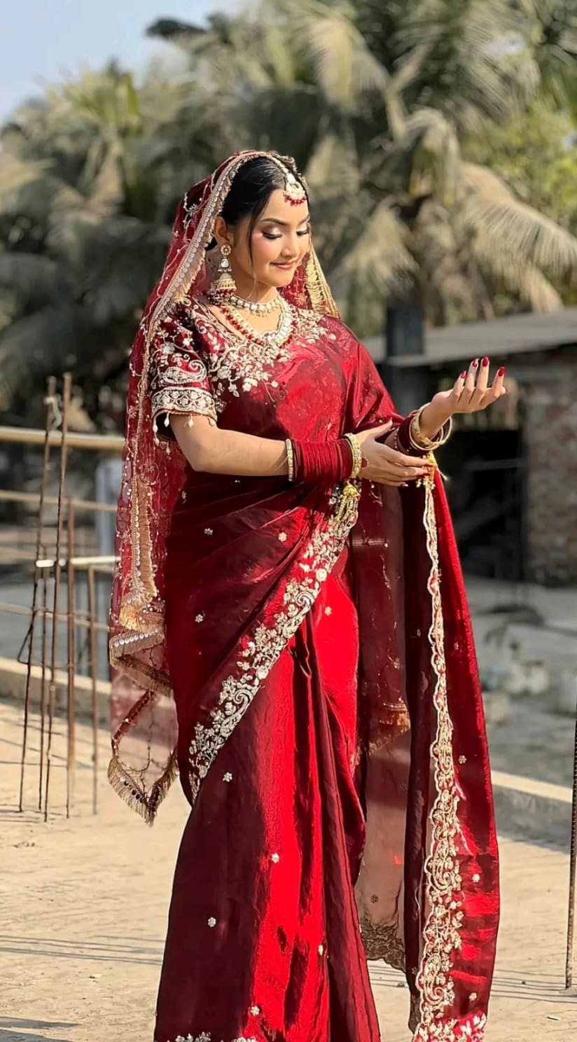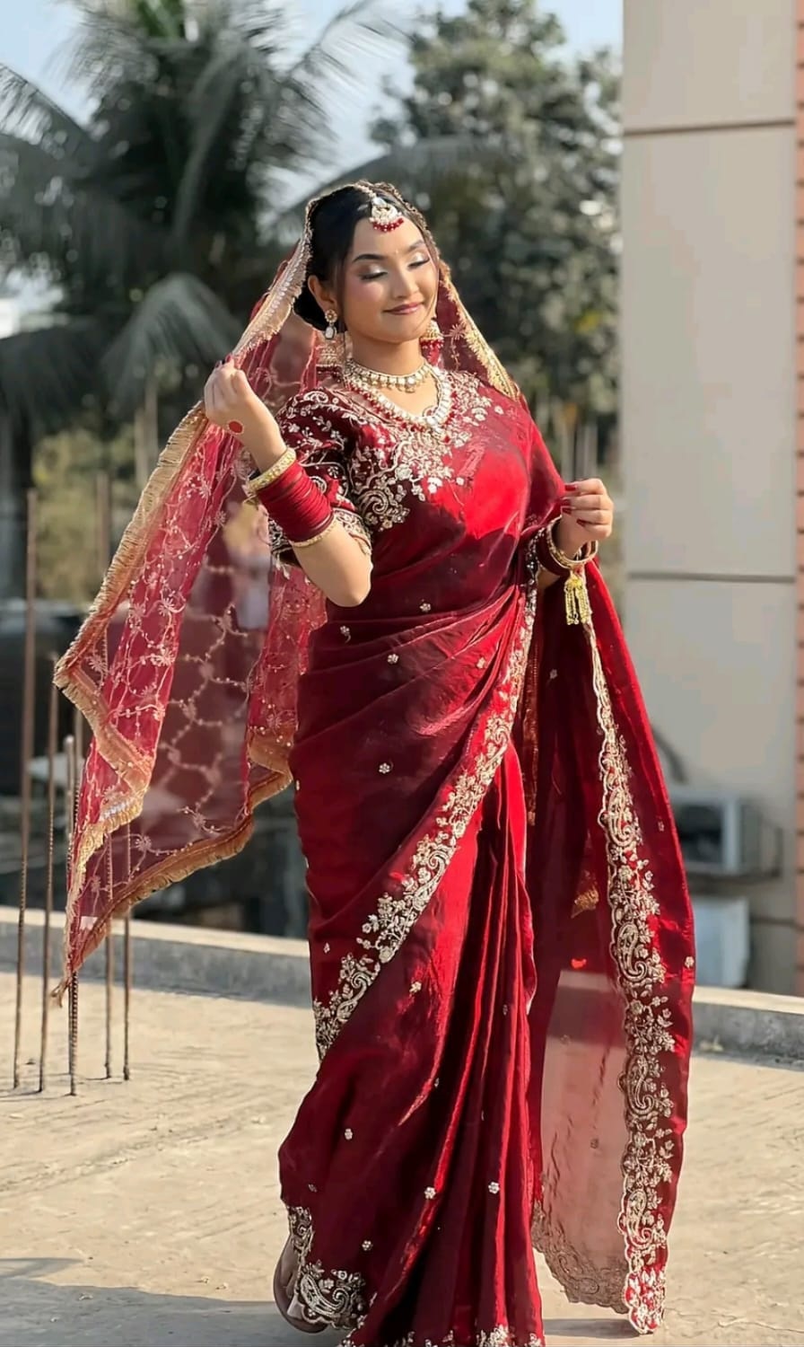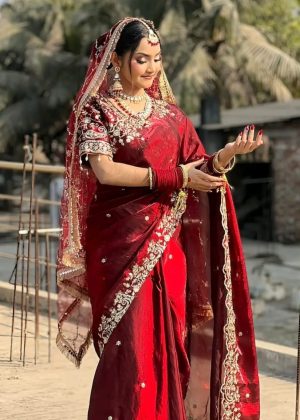মাধুরী শাড়ি উইথ রেডি ব্লাউজ – ফুল এম্ব্রয়ডারি ওয়ার্ক