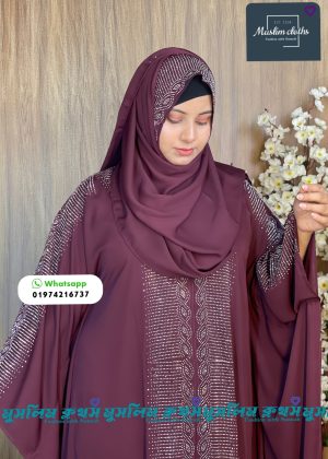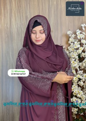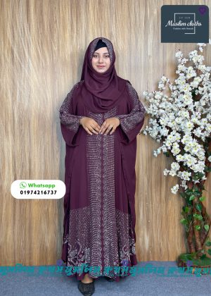 এই আয়াত বোরকাটি বিশেষভাবে তৈরি করা হয়েছে মুসলিম নারীদের জন্য, যারা তাদের পর্দা বজায় রেখে ফ্যাশনের সাথে তাল মিলিয়ে চলতে চান। স্টোন ও লেসের সংমিশ্রণে ডিজাইন করা এই বোরকাটি অফিস, বা যে কোনও সামাজিক অনুষ্ঠানে পরিধানের জন্য উপযুক্ত।